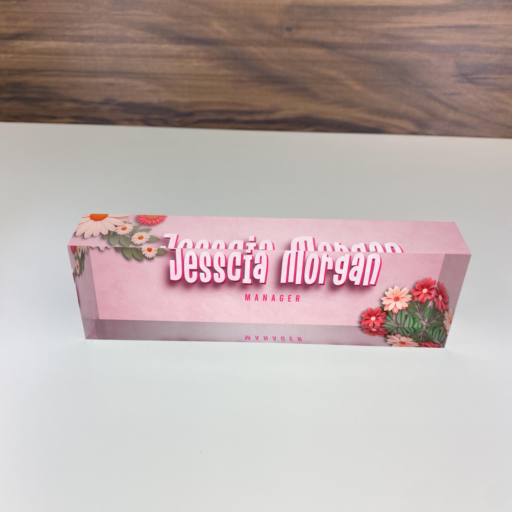 Desk 3D Name Plate, Acrylic Desk Name Plate for Women, Custom Desk Plaque, Professional Gift for Boss, Office Gifts Cherry Floral 3D Text