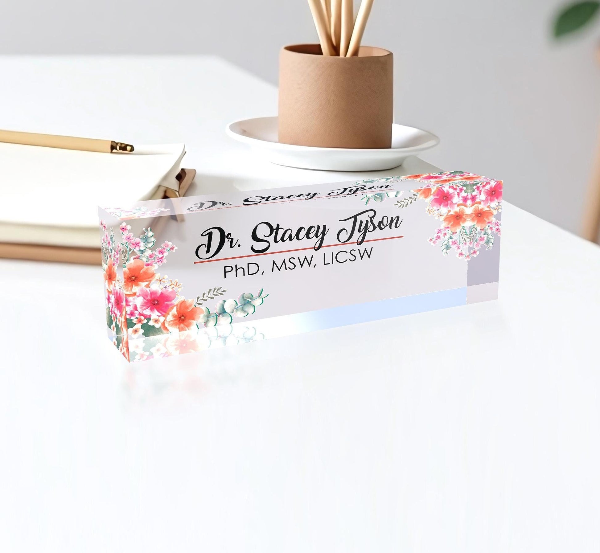 Flower Custom Name Plate for Desk, Customized Acrylic Plate Gift for Teacher Co-workers Gifts, Office Decor, Desk Nameplate, Desk Name Sign