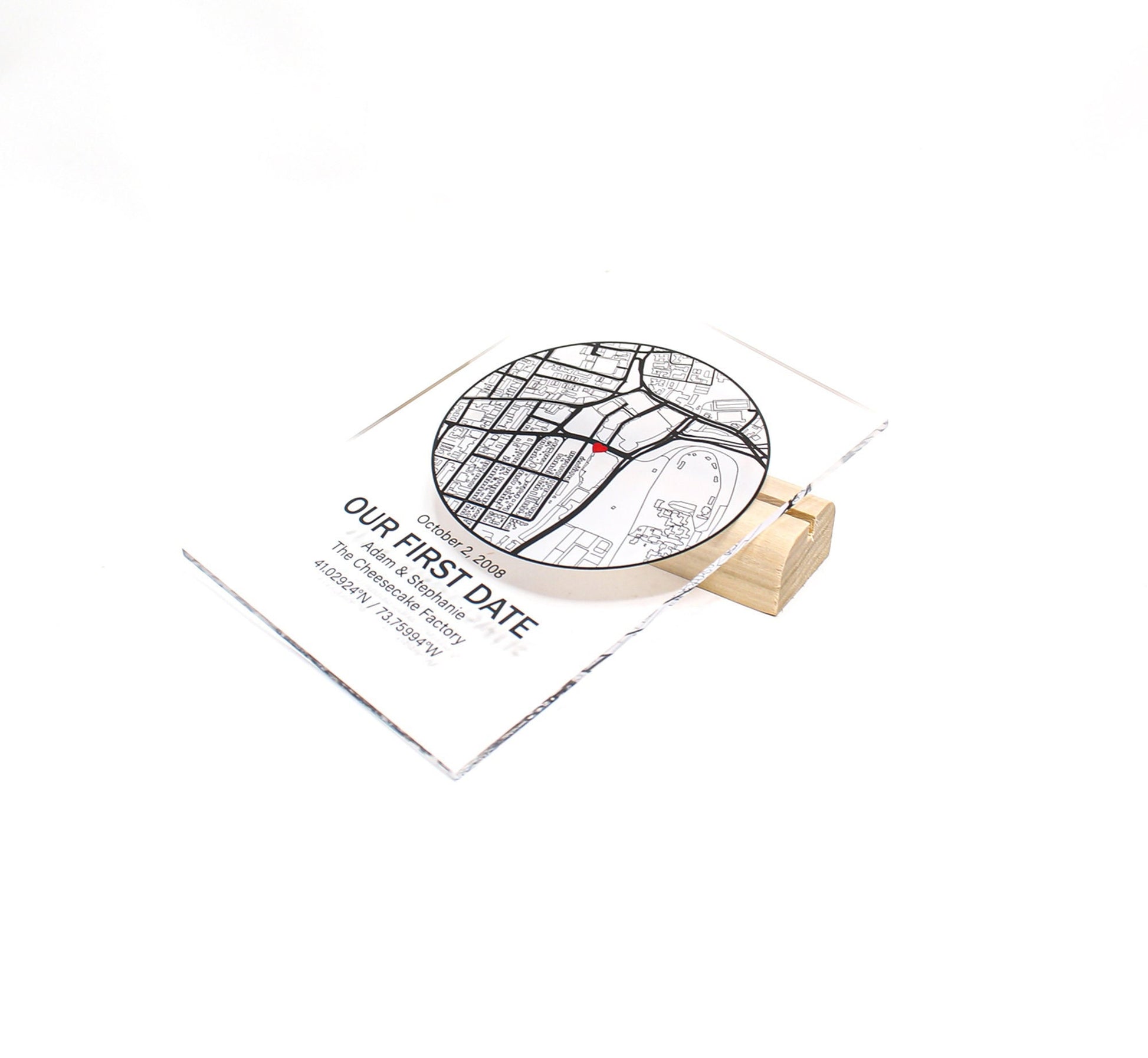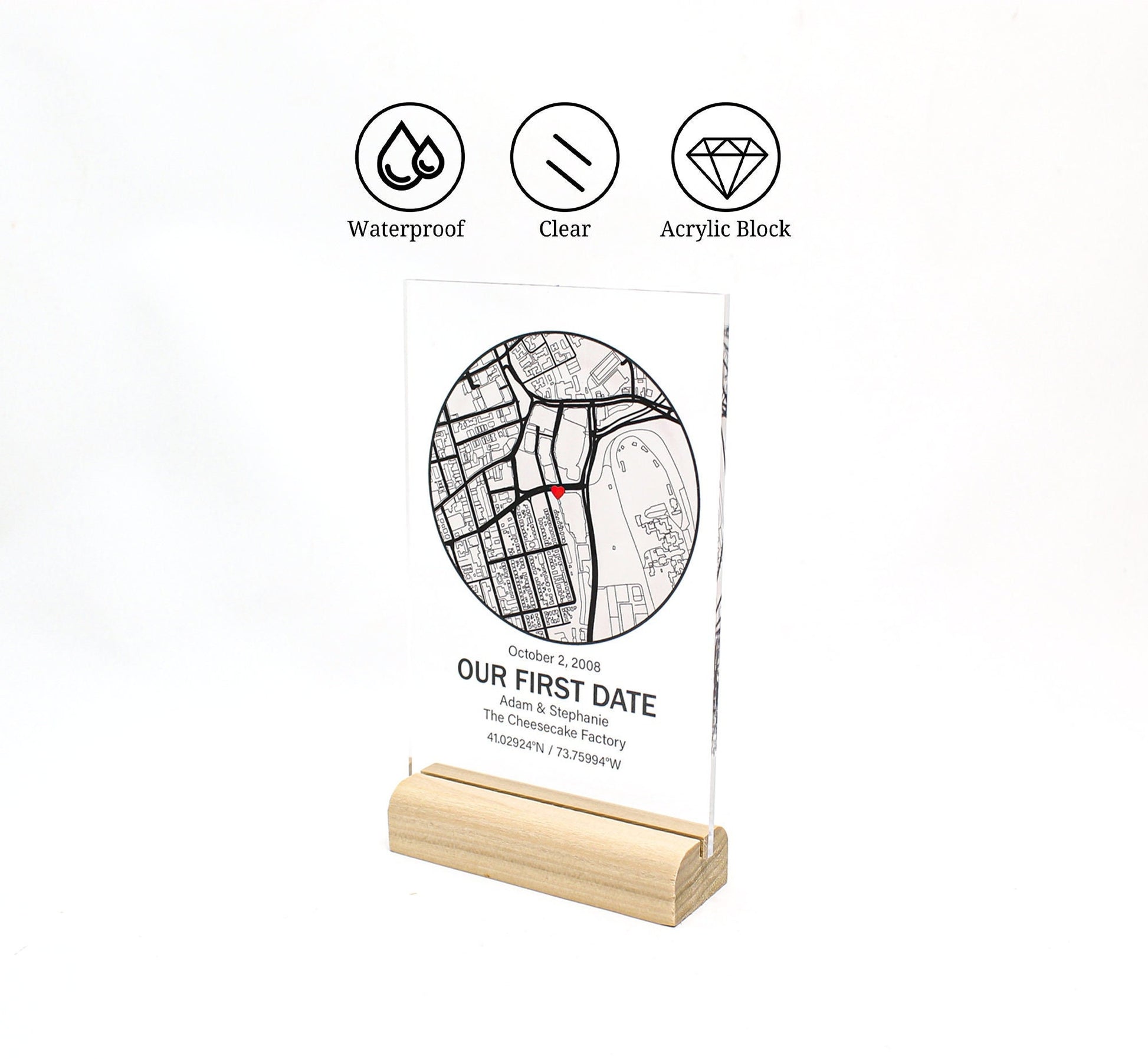Personalized gift acrylic map our first date, home with glass stand for mother, wife, girlfriend, husband, boyfriend, christmas