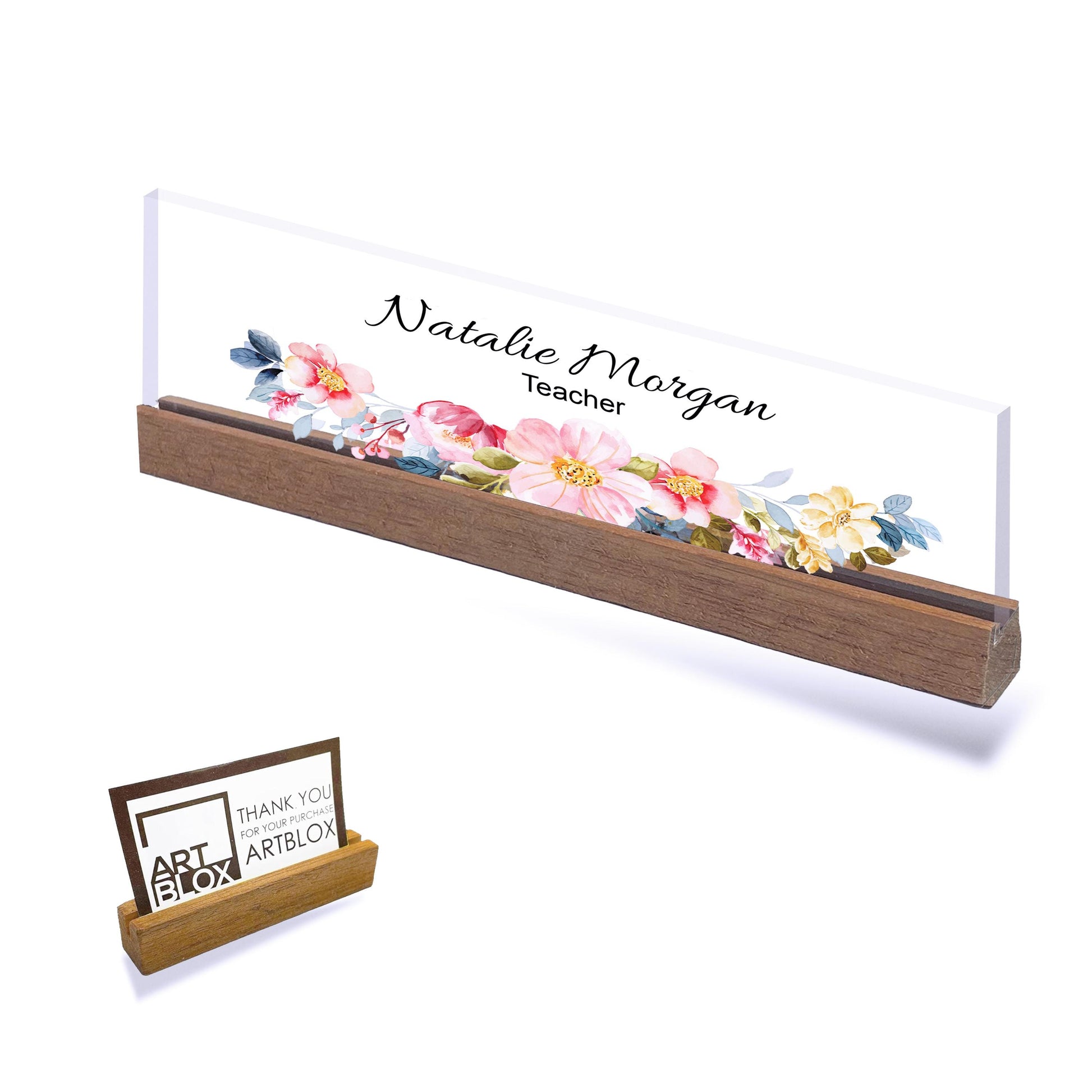 Personalized Luxury Desk Name Plate | Wooden Desk Nameplate with Pen and Cardholder, Custom Desk Name Plate, Office Sign, Desk Sign