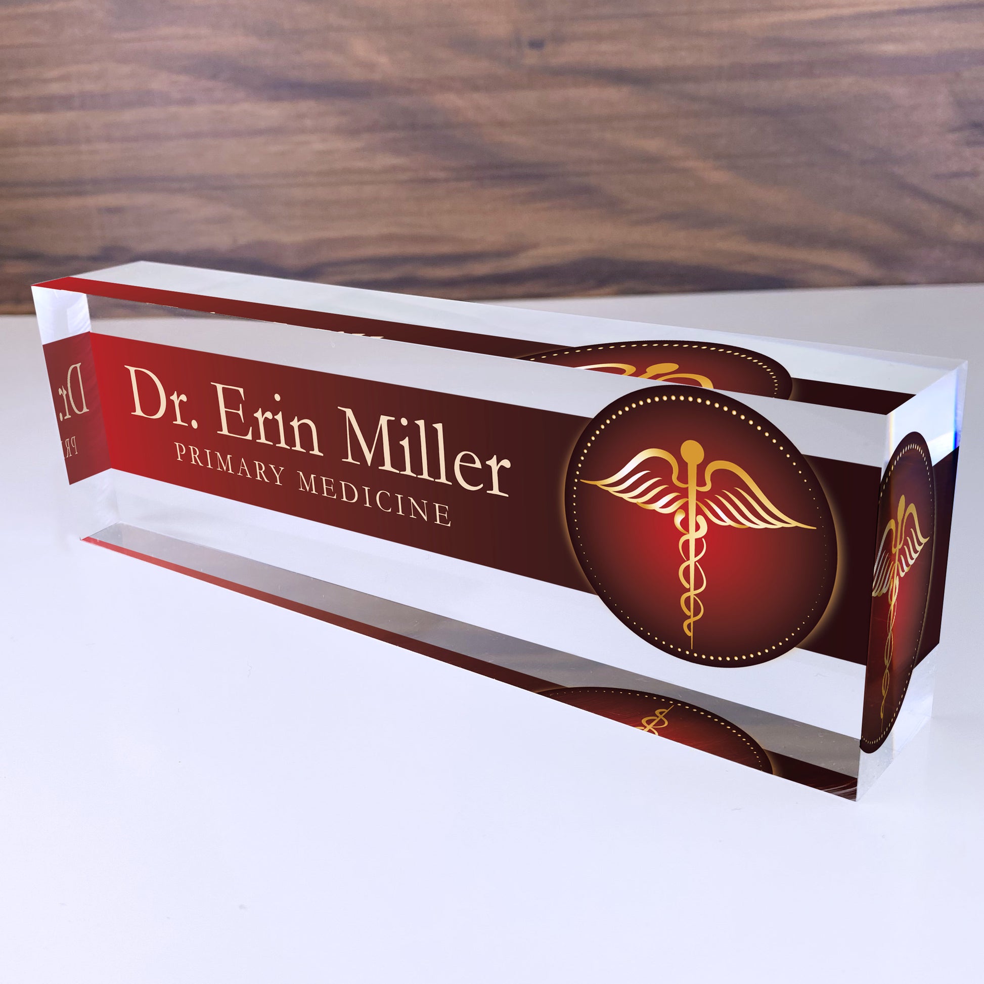 Personalized Name Plate for Desk | Medic Design On Clear Acrylic Glass | Custom Office Decor Nameplate Sign | Personalized Gift