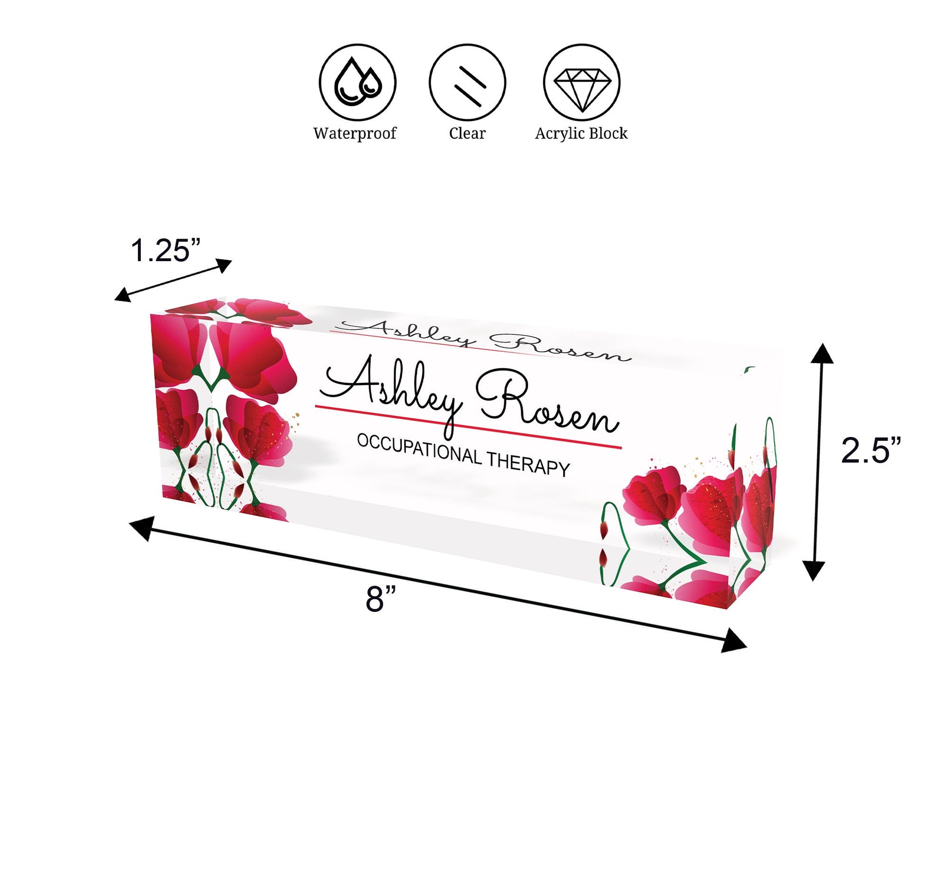 Personalized name plate, office desk gifts, name plate for graduation, glass acrylic, name plaque, nurse gift, gift new office, flower red