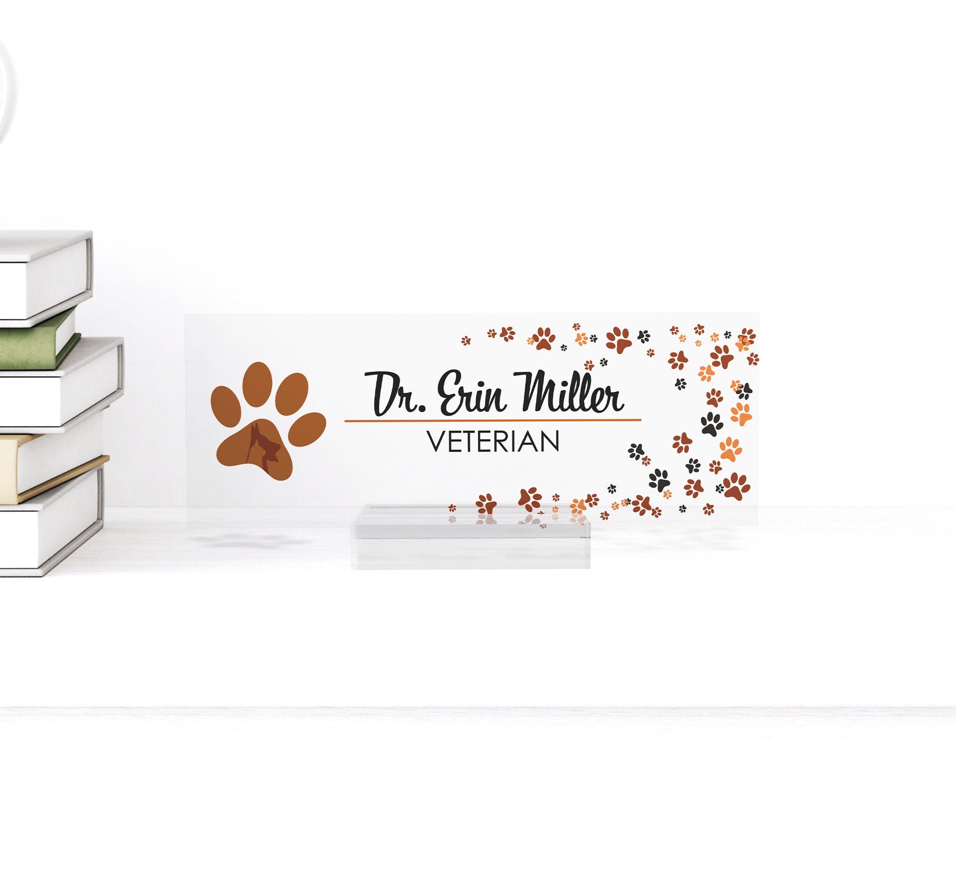 Personalized Veteran name plate for desk with wood stand | entrepreneur office decor | executive acrylic nameplate | teacher gift